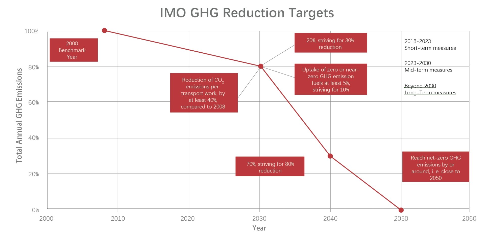 2. 截至2040年,航運(yùn)溫室氣體減排較2008年標(biāo)準(zhǔn)實(shí)現(xiàn)至少70%,爭(zhēng)取實(shí)現(xiàn)80%。